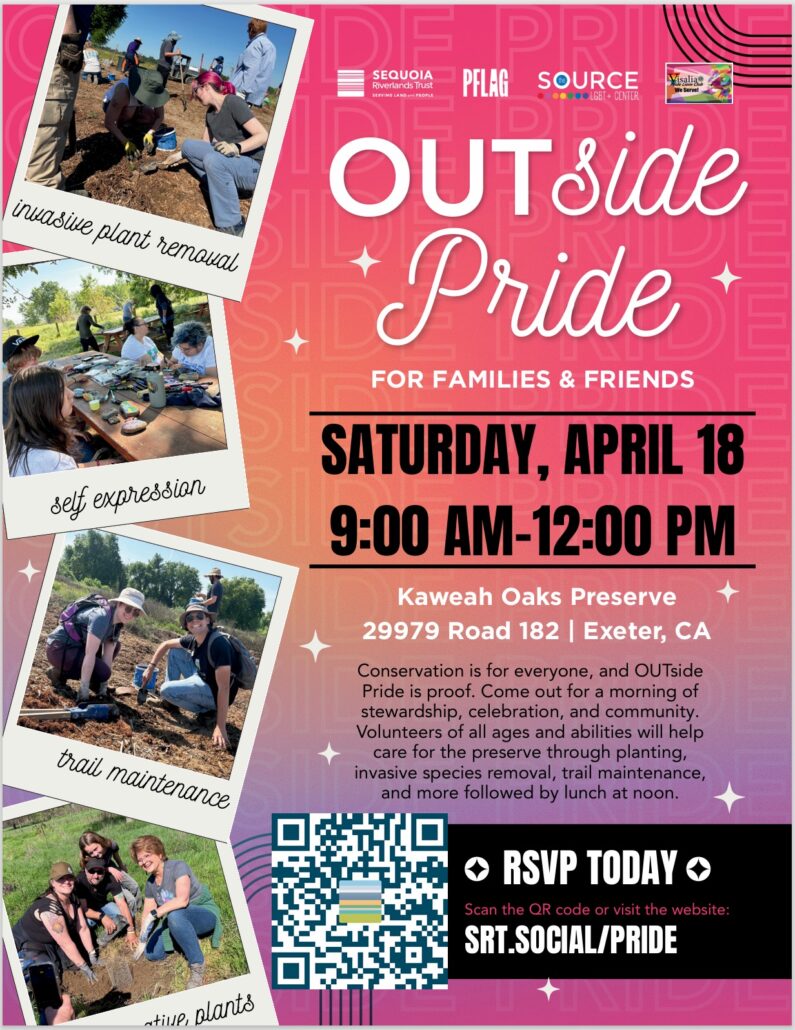 Join Visaila Pride, PFLAG Tulare County, and the Source for our annual Outside Pride for Family and Friends. Lots of fun activities and lunch too.