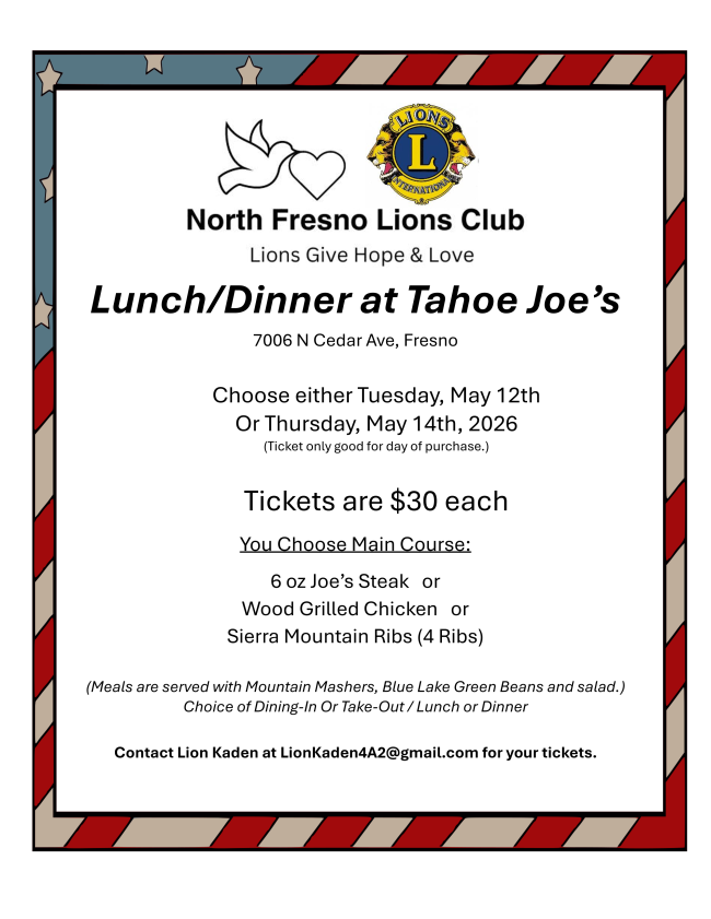 5/12 – Tahoe Joes Fundraiser, North Fresno
